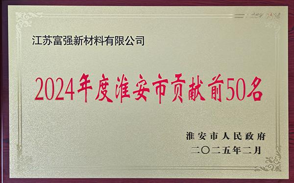 2025年2月5日,淮安市重特大项目攻坚暨优化营商环境大会召开,江苏富强新材料有限公司被评为“2024年度淮安市贡献前50名”。