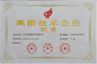 2025年2月18日,经江苏省科学技术厅、江苏省财政厅、国家税务总局江苏省税务局层层严格审核、多轮评估,江苏富强新材料有限公司被评为高新技术企业。