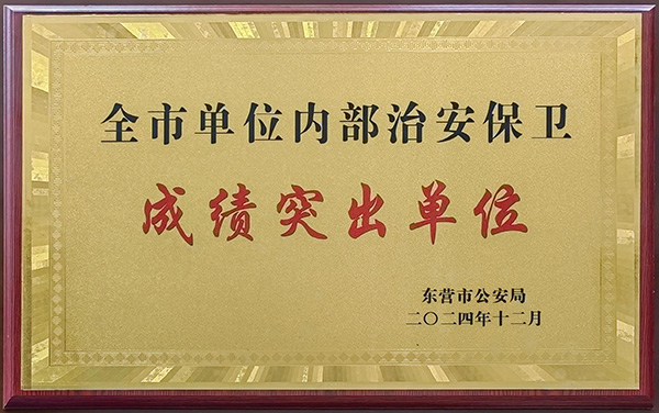 2025年2月20日,山东长运娱乐化工股份有限公司被东营市公安局评为“全市单位内部治安保卫成绩突出单位”。